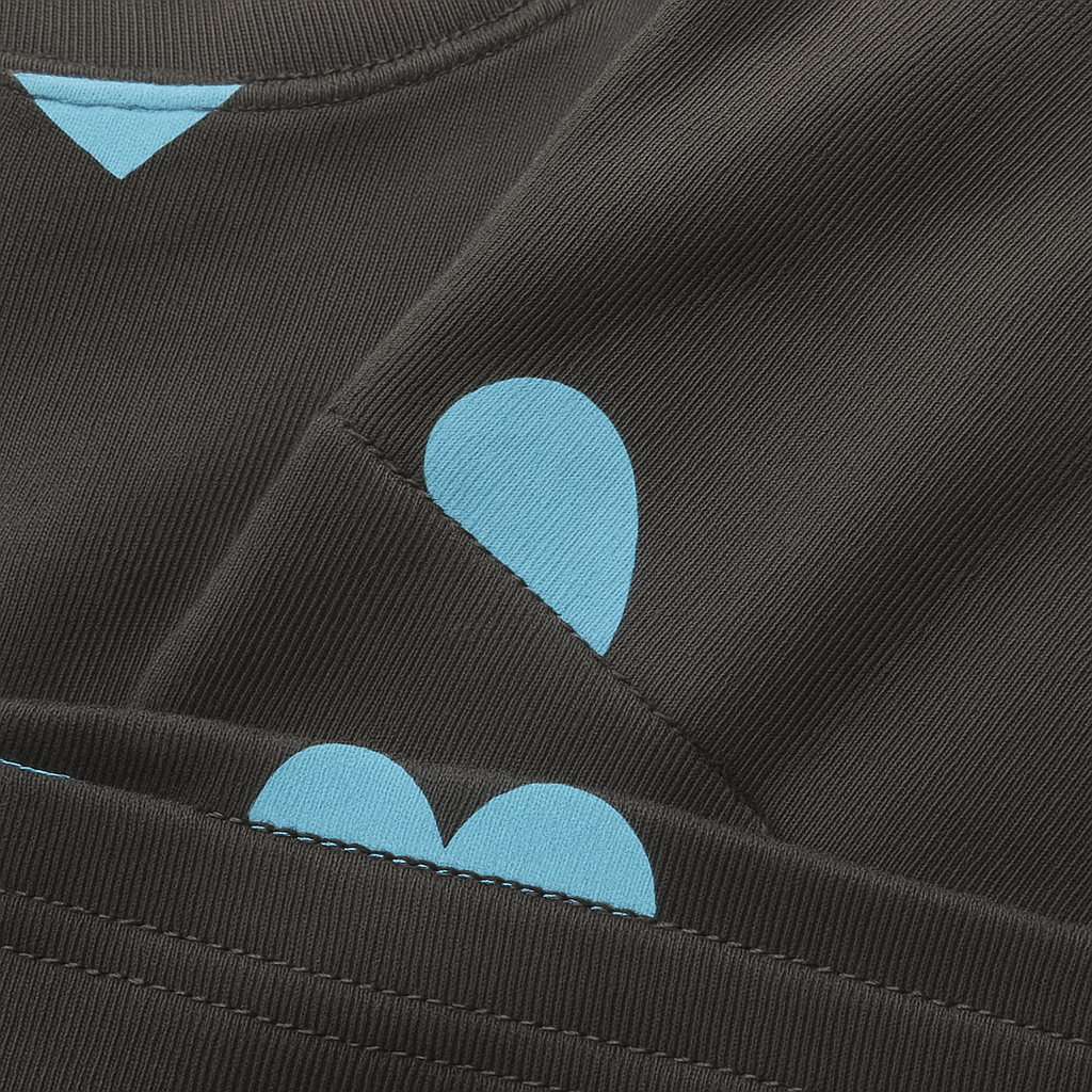 Mutig, kreativ und mit offenem Herzen • Oversized für alle von XS bis XL: Der Fit bleibt relaxed • Unisex Design • Ein Kunstwerk zum Anziehen – leuchtend blaue Herzen auf tiefschwarzem Stoff – ein Kontrast, der im Kopf bleibt • Limited Drop • 100% Bio-Baumwolle